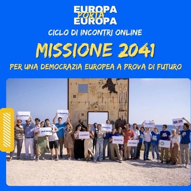 Missione 2041 è un progetto ambizioso promosso dalla rete Europa Porta Europa, un ciclo di incontri per rispondere a questa domanda e tracciare un percorso condiviso verso una democrazia europea più inclusiva, giusta e resiliente.