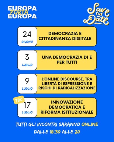 Un viaggio verso il futuro della democrazia: 4 incontri dal 20 giugno per costruire insieme una nuova visione europea organizzati dalla rete giovanile Europa Porta Europa.